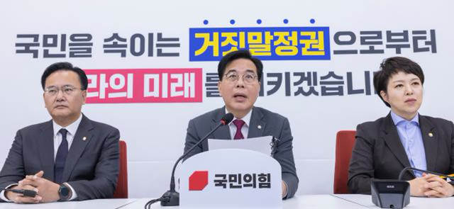 1 사진=연합뉴스 송언석 국민의힘 원내대표가 통일교 금품 수수 의혹을 규명하기 위한 특별검사와 민중기 특검팀을 수사할 특검 도입을 주장했다.