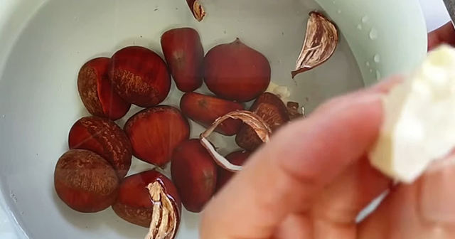3 단단한 겉껍질에 칼이 미끄러지기 쉽고, 조금만 방심하면 손을 다치기 십상이다.보통은 밤을 한소끔 삶아 껍질을 부드럽게 만든 뒤 까는 방법을 많이 사용한다. 마치 토마토 껍질을 벗길 때 끓는 물에 데쳤다가 찬물에 식히는 원리와 비슷하다.