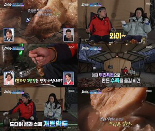 6 16일 방송된 MBC 설 특집 ‘전국1등’에는 천안 우리흑돈을 소개하는 김대호의 모습이 그려졌다.김대호는 앞다리살을 맛보며 “수육의 부드러움도 있지만 직화의 바삭함이 있는데 그걸 두개 다 살린 느낌”이라고 감탄했다.파김치에 배추김치, 상추까지 동원해 갈빗살을 맛본 그는 “감칠맛이‘라며 쉽게 말을 잇지 못했다.여기에 마침 눈까지 내리며 분위기가 더욱 무르익어 갔다.