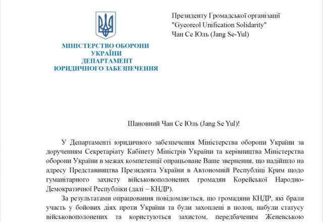 0 우크라이나 국방부 법무지원국은 최근 우크라이나에 수감 중인 북한군 포로 2명이 '전쟁포로 지위'를 취득해 '전쟁포로의 대우에 관한 제네바 협약'에 의해 보호를 받고 있다고 밝혔다.우크라이나에 수감 중인 북한군 포로 송환 운동을 벌이고 있는 '북한군자유송환비상대책위원회'(비대위)가 24일 공개한 우크라이나 국방부 법률지원국의 답신에 따르면 우크라이나 국방부는 북한군 포로들에게 △외부 세계와의 연락 보장 △국제 감시 및 인권기구 접근 허용 △국제인도법에 따른 보호조치 등을 취하고 있다고 밝혔다.