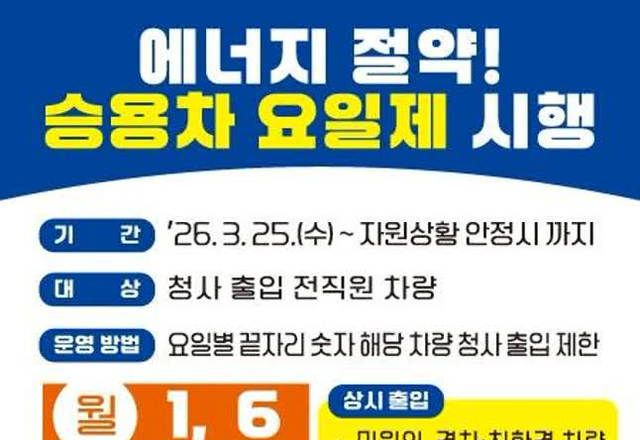25일부터 공공기관 차량 5부제, 중동발 에너지 위기 대응