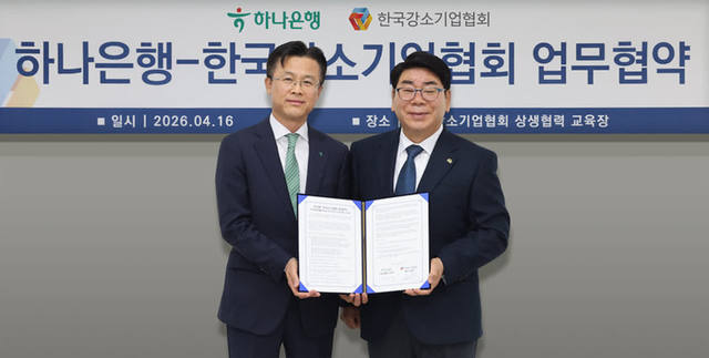 0 서울 강남구 소재 한국강소기업협회 상생협력 교육장에서 김영식 한국강소기업협회장(사진 오른쪽), 서유석 하나은행 기업그룹 부행장이 업무협약 기념 촬영을 하고 있다.(제공=하나은행)하나은행은 지난 16일 한국강소기업협회와 대한민국 강소기업의 국내외 경쟁력 강화 및 생산적 금융 확대를 위한 업무협약을 체결했다고 17일 밝혔다.이번 업무협약은 양 기관이 보유한 핵심 역량을 결합해 국내 강소기업의 지속 가능한 성장 기반을 닦고, 생산적 부문으로의 자금 흐름을 촉진하기 위해 마련됐다.