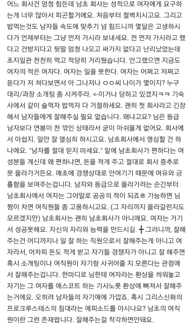 남초회사 들어가는 여자신입이 주의해야 할 점