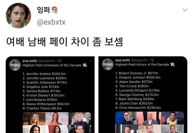 여배우 남배우 페이 차이.twt
