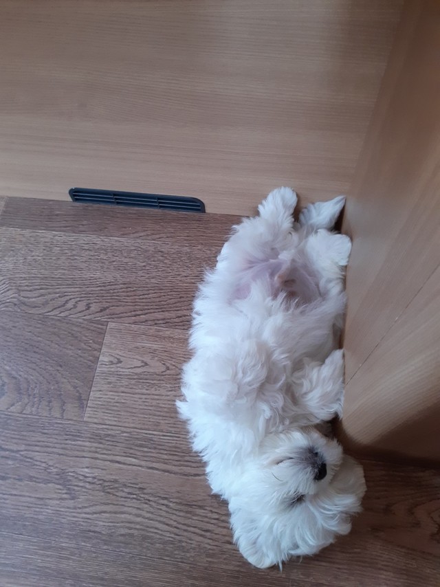 말티즈인데 털을 다 깍고 뒤집어서 자니까 정말 귀엽네요.ㅎㅎ