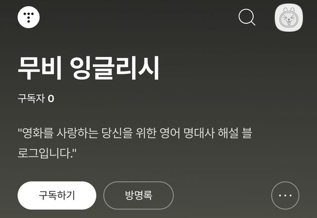 제가 블로그 하나를 만들었는데 영화 한 장면에 나오는 명대사로영어공부, 감동, 해석까지 해주는 그런 글을 쓰고 있습니다영화에 관심있고 영어공부에 관심이 있다면분명 도움이 되실 겁니다.한 번 놀러와주세요!cebin.tistory.com아래는 제 블로그 링크입니다.즐겁게 봐주세요!cebin.tistory.com