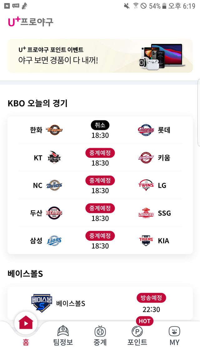 오늘의 프로야구 일정