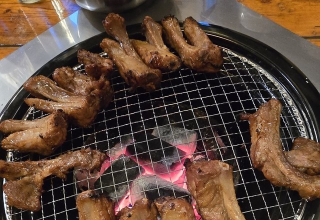 쪽갈비 쪽쪽~굵은 햄같은 느낌적인 느낌 ㅎ 배불러서 껍데기 3접시? ㅎㅎ껍데기 두퉁싸니 완맛탱! 다 초벌되어 나와서 조금만 불에 올려두었다 먹으면 끋ㅈ~