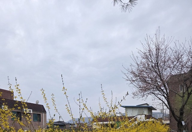 노오란 개나리울타리