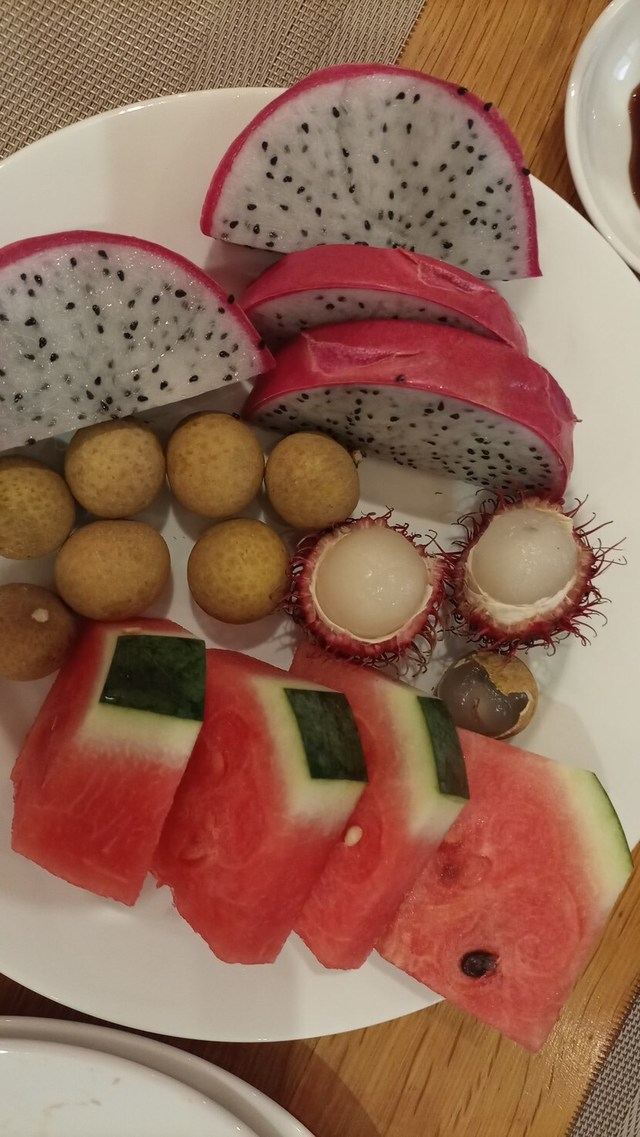 후식으로 열대과일을 이만큼이나 먹어요