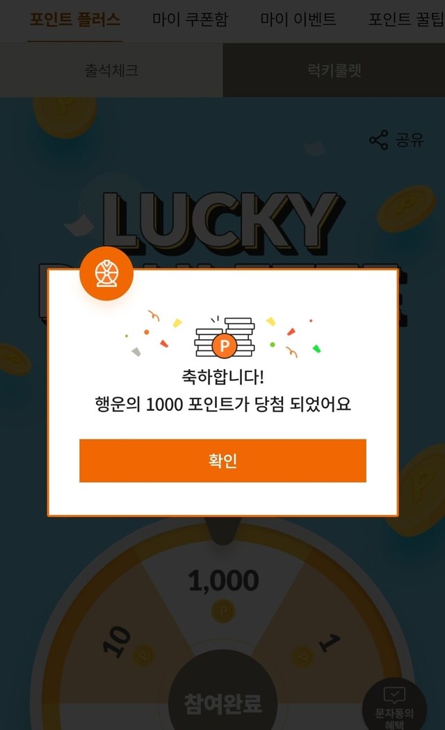 처음으로 룰렛 1000p 당첨
