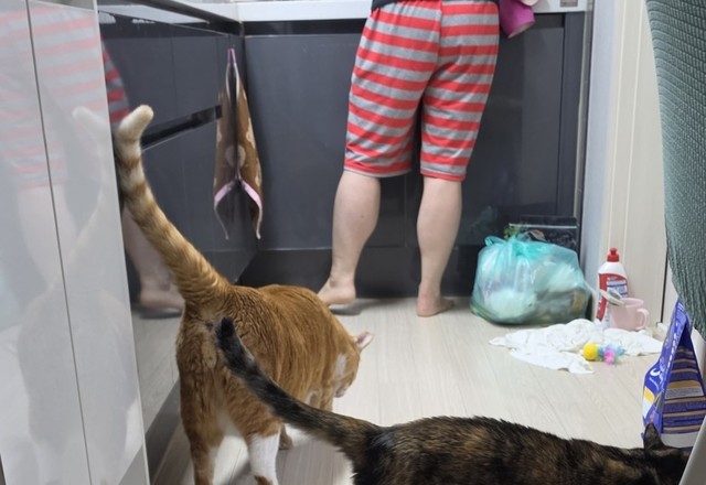 사료 노리는 노랑이 ㅋㅋㅋ