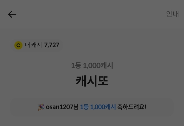 상금 100캐시!! 기분 좋네요😃