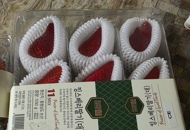 딸기가 많이 싸졌어요마트에서도시장이나 청과상에서도마트에서품종딸기 할인하길래모처럼 사왔어요고이고이 하나씩 포장된귀하신 몸들 ㅎㅎ크고 달고 맛있네요 😋🥰🍓🍓🍓🍓내일(오늘)은 딸기처럼 상큼한 하루가 되기를 😄😄