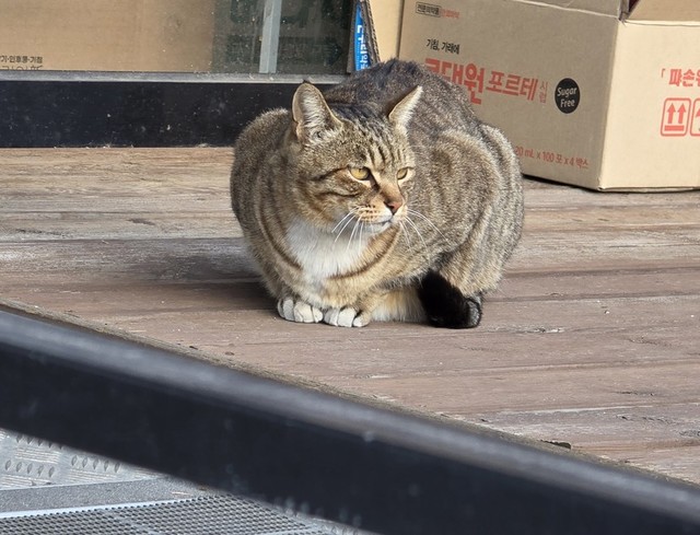 저희 아파트 근처에 다니는동네고양이 ㅎㅎ고등어인데덩치가 좋고 털도 윤기가 좋아요둔둔냥이 😄그냥 지나가는걸 찍었는데그림자가 더 기골장대하게 나왔어요 🤭어슬렁어슬렁 느긋하게 걸어가는 모습이거의 뭐 호랑이.. 😄