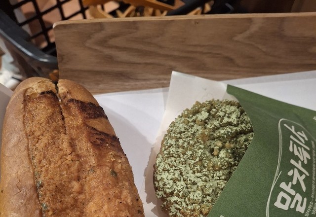 성심당의 말차튀소와 명란바게트 ㅋㅋㅋㅋㅋㅋ맛있어요!!!!!!
