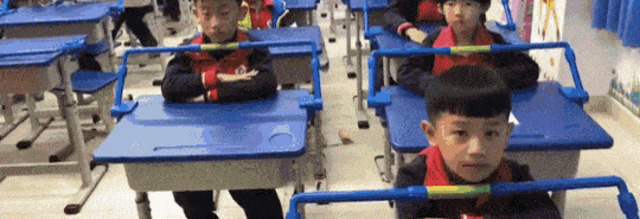 중국 초등학교 책상에 설치된 자세교정기