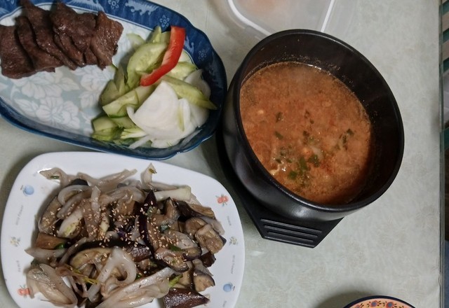남편이 끓인 매운짬뽕 떡라면~~