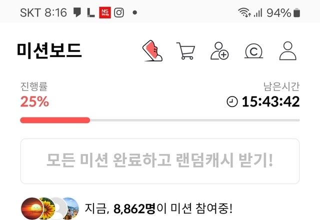 지금시각 08시16분 미션보드~미션 중 인증샷~~