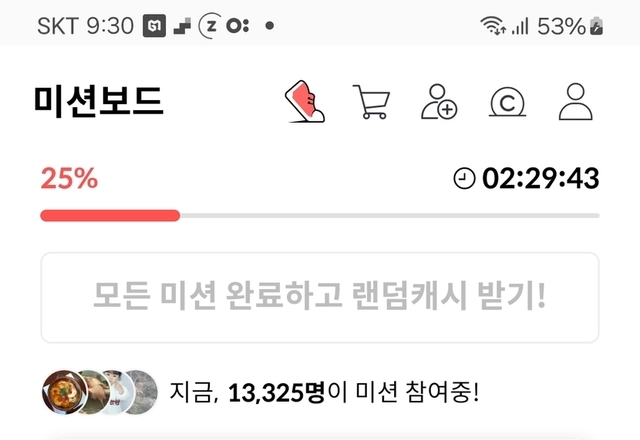 지금시각 14시23분 미션보드~미션 중 인증샷~~