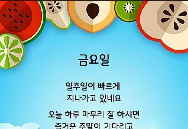 굿~모닝 좋은 아침입니다~~~ ☀️ 🌷금요일 문안편지 '신이 우리에게 주신 선물'신이 우리에게 주신가장 큰 선물 두 가지는 눈물과 웃음이라고 합니다 눈물에는 치유의 힘이 있고웃음에는 건강이 담겨 있습니다 기쁠 때 몸 안팎으로 드러나는가장 큰 행동이 웃음 입니다 당신의 마음 속에는특별한 스위치가 있습니다 오직 당신만이키고 끌 수 있는 행복 스위치 입니다 지금 내가 기쁘고 즐겁고행복하지 않다면 나도 모르게 그 스위치를꺼 놓고 있는건 아닐까요? 행복은 누리고불행은 버리는 것입니다 소망은 좇는 것이고원망은 잊는 것입니다 기쁨은 찾는 것이고슬