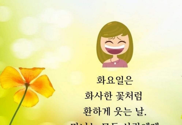 굿~모닝 좋은 아침입니다~~~☀️💐화사하게 빛나는 화요일! 신나고 멋진 날 되십시오!강해져라! 누구도 망가뜨릴 수 없도록.독해져라! 누구도 널 상처 따윈 줄 수 없도록.냉정해져라! 아닌 건 후회없이 짜를 수 있도록.힘을 키워라! 힘 자랑하는 사람과 맞설 수 있도록.지혜로와져라! 누구도 널 상대할 수 없도록.배워라! 누구든 널 무식하다 할 수 없도록.맘을 넓혀라! 진심으로 용서를 받을 수 있도록.사랑을 배워라! 진심으로 사랑을 할 수 있도록.감사하라! 지금 누리고 있는 모든 것에.피하지 마라! 또 다시 찾아오