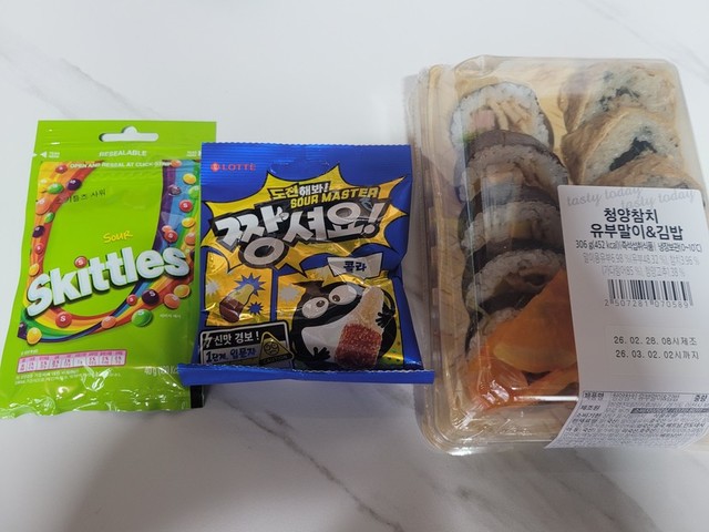 이마트 짱셔요 콜라, 스키틀즈 사워, 김밥