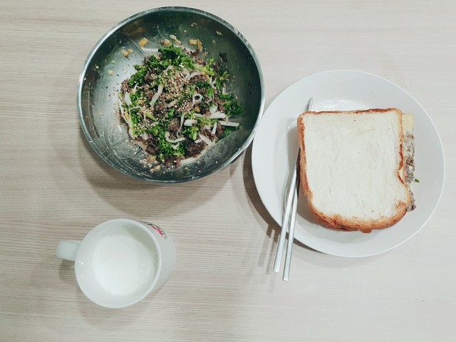 오늘 아침으로 먹은 토스트와 불고기 샐러드, 그리고 참지 못하고 사서 먹은 야식 곱창 볶음 올립니다. 다들 밥 잘드시고 건강 챙기세요