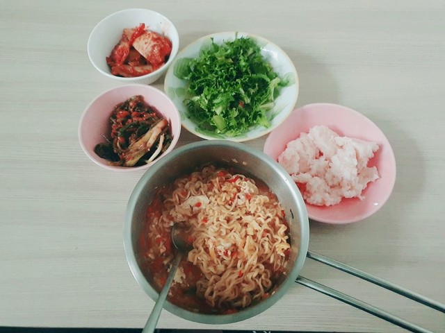 늦은 아침으로 집에 있던 파프리카, 양파, 마늘 넣어서 신라면 끓이고 치커리에 새우 갈아서 새우찜 했는데 다 뭉개지네요.다들 오늘도 맛있는거 드시고 좋은 일만 가득하시길 바랍니다.