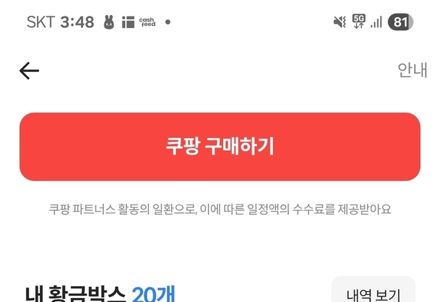 쿠팡에서 구매하고황금박스 20개 받았어요.