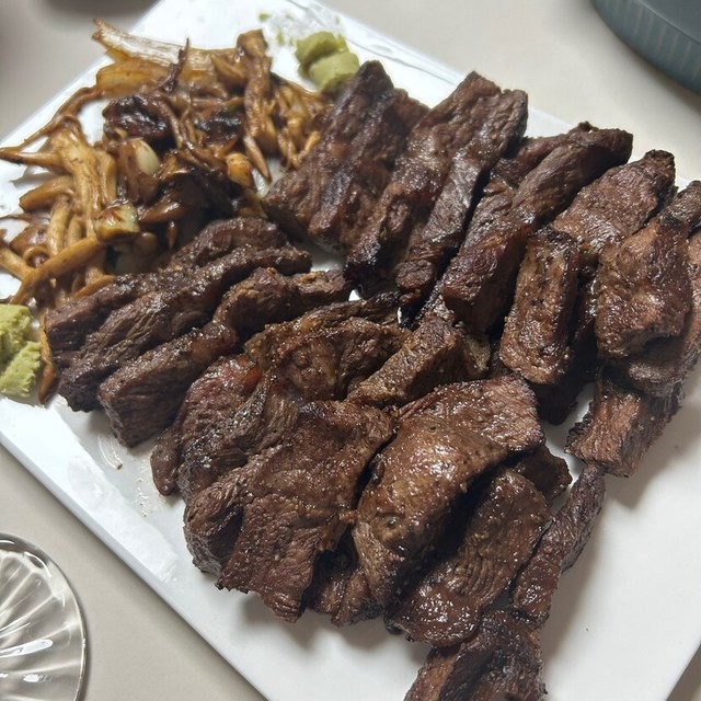퇴근길에 이마트에서 부채살 사다가 굽고. 스파게티집에있던 달달한 레드와인 한잔도수가 19.5라 먹다보니 취기가올라왔다스테이크도 스파게티도 맛났다