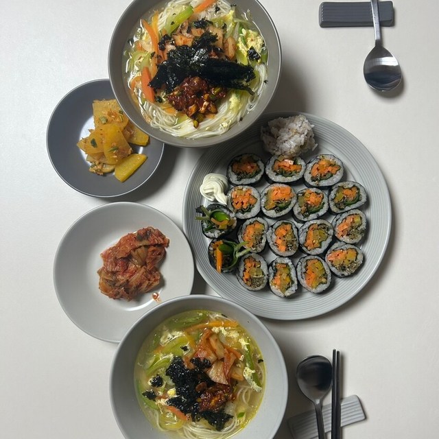 저녁은 내가좋아하는 국수와 김밥오랜만에 국수해먹었더니 완전 맛있었다