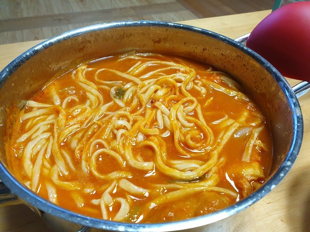 전 넣고 고추장찌개 끓여달랬더니 신랑이 어묵면도 찾아서 맛있게 끓여주네요덕분에 어제 맛나게 소주한잔 했어요