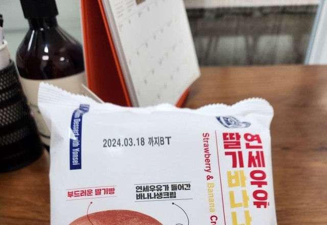 연세우유 딸기바나나 생크림빵을 먹게되었습니다.