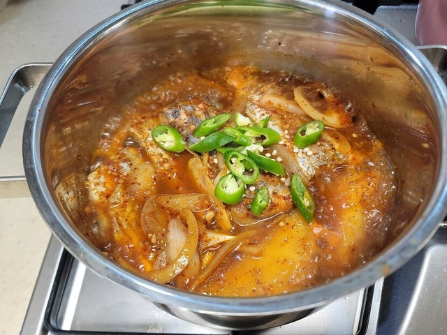 냉장고에 있는재료들로 저녁 준비했어요갈치무 조림과 남은무로 소고기 무국단짠에 조합갈치조림을 밥위에 얹어 한수저시원하게 청양고추를 넣은 무국을 먹으니 밥도둑이 따로없네요