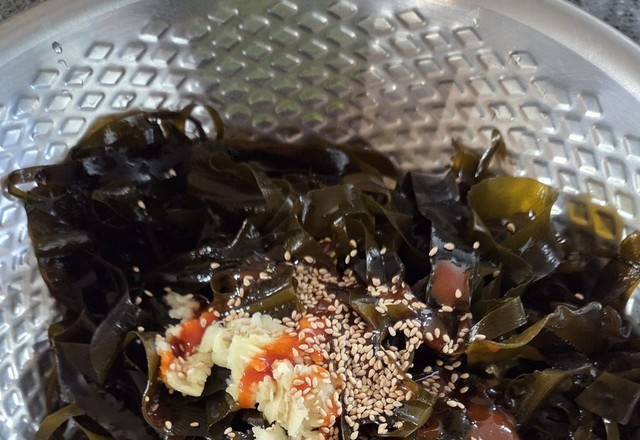 자연산 물미역으로 무침했어요초장 다진마늘 깨소금 넣어 무쳐 맛있게 먹었어요 오독오독 씹히는 식감이 좋아요~