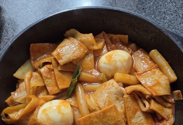 어제 저녁은 떡볶이 먹었어요 양배추 대파 오뎅 계란 넣어 준비했어요 떡볶이는 늘 남편 몫