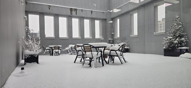 눈내린 옥상 정원