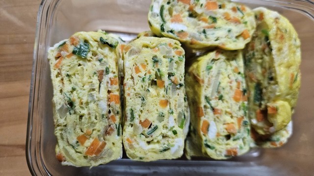 아들 아침으로 계란말이를 했어요. 야채 다져서 부쳤어요
