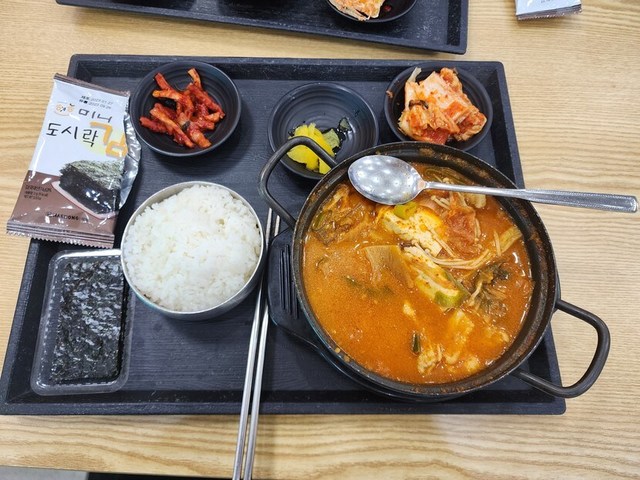 오늘점심 육개장칼국수 김치만두 ,,,,반찬은 두가지 23.03.16