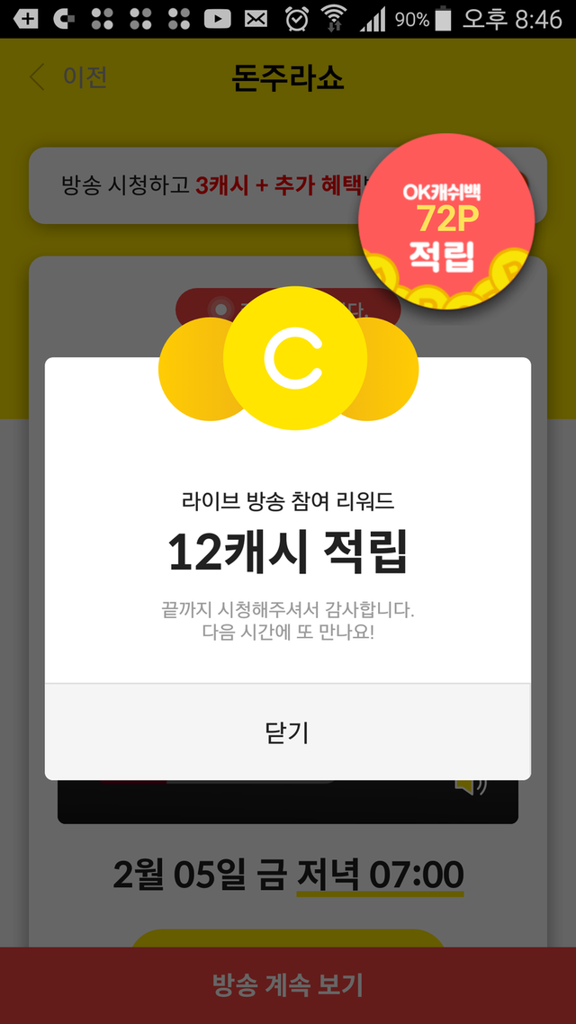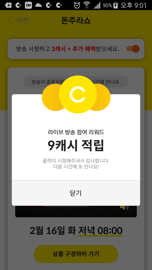 돈주라쇼 요새 왜 이러는지 아시는분 ???잘 들어가 지지도않고정시에 시청을 시작해서 끝까지 시청해도9캐시, 오늘은 12캐시나만 이러나 ??
