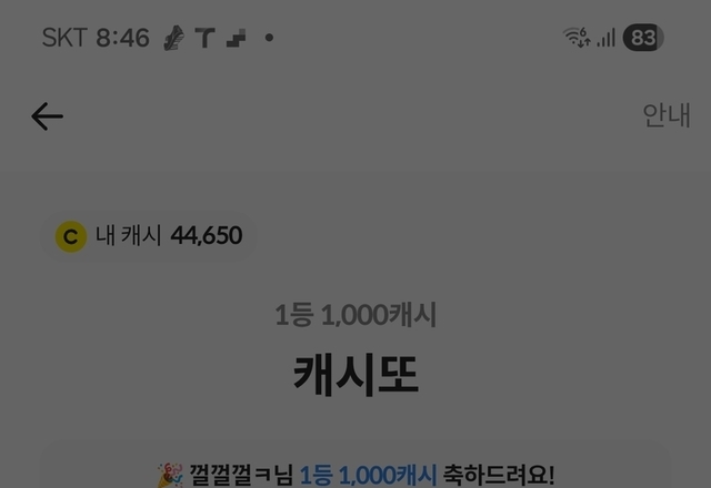 100캐시 받았어요