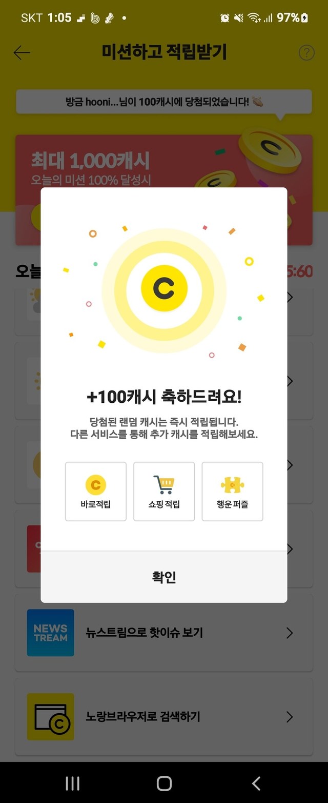 ⭐100~💕 캐태기가 오는걸 알았는지 보너스를 주네요⭐💝💝💝💝💝💝💝💝💝💝💝💝💝💝💝💝💝💝💝💝💝💝💝💝💝💝💝🙋♀️ 주말 즐겁게 보내고 계신가요~^^ 노랑브라우저로 검색하기 이것도 이번달에 서비스가 종료 된다고 뜨던데요🥺 좀 일찍 알았으면 적립 했을텐데요~ 이제라도 알았으니🐶이득✌️✌️ 퍼즐 맞추시고 미션하고 적립받기👈 들어가세요 검색하면 한시간에 한두번은 적립 되더라구요 적립 서비스 종료~되기전에 적립들하세요~