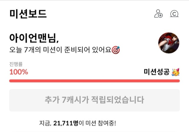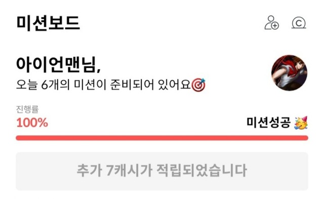 미션보드 드디어 완료했네요..😅😅완료해서 10캐시 받았어요~