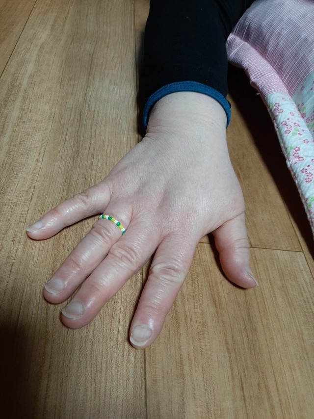 막내딸이 비즈반지를 만들어줬어욯ㅎㅎㅎ예쁘죠^^*