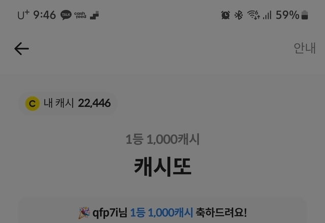 캐시 당첨 좋아요