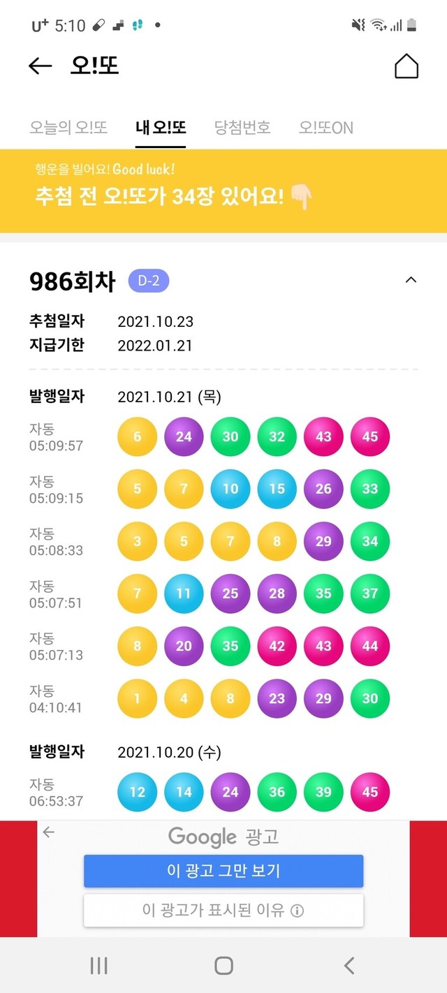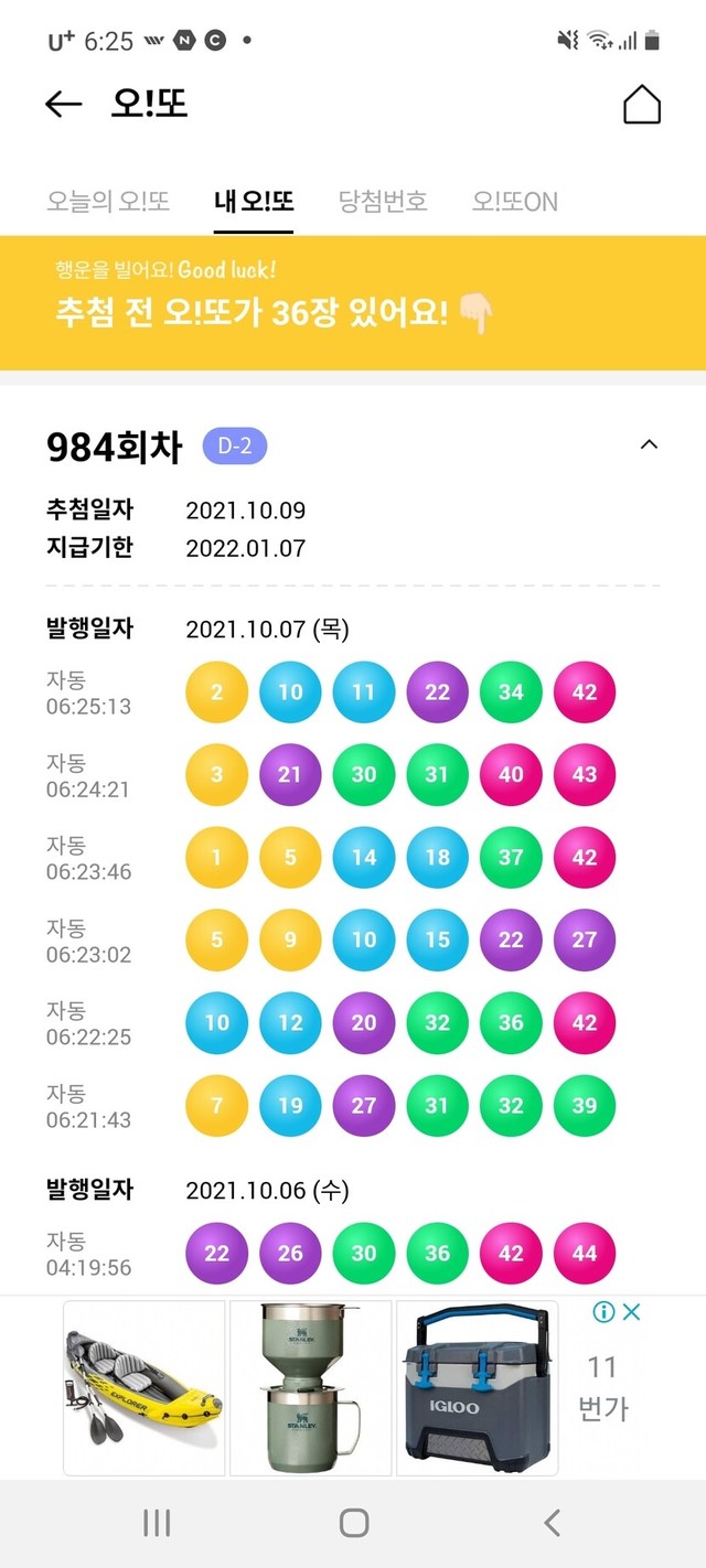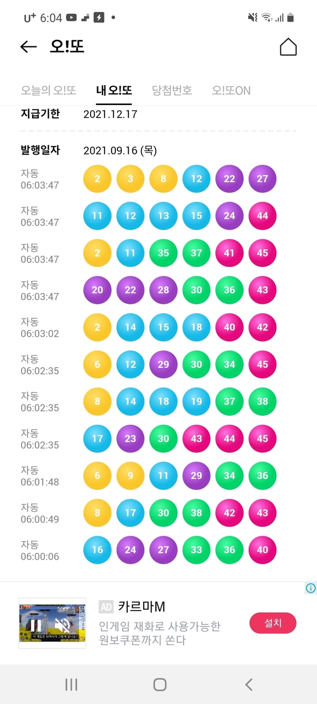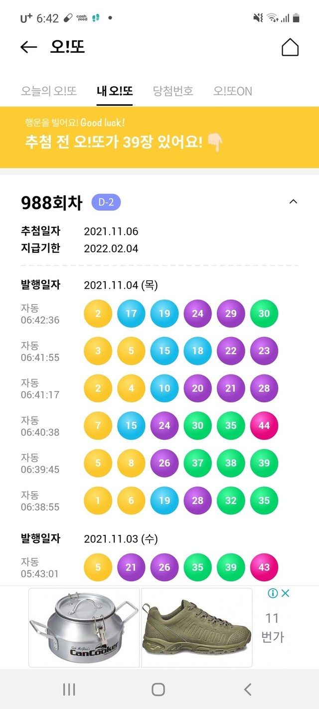 오늘의 오!또 번호는?