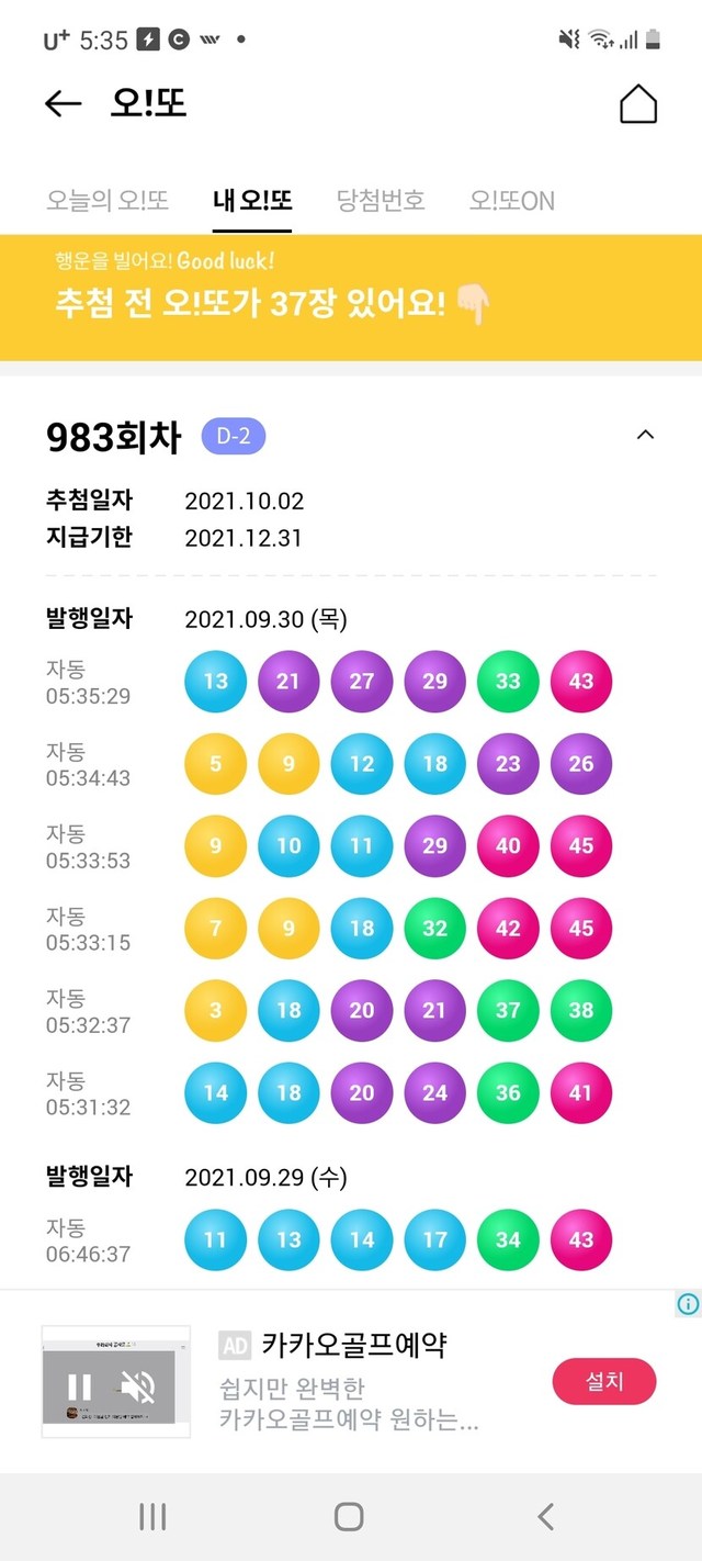 오늘의 오!또 번호는? 두구두구두구두구두구두구두구~~~~~