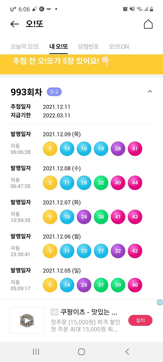 오늘의 오! 또 번호는?