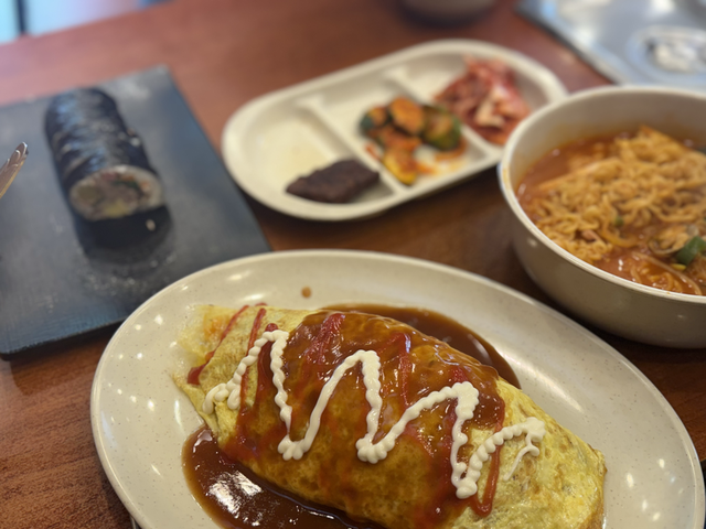 오므라이스 짬뽕라면 참치김밥